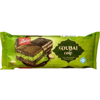 Enjoy the delicious taste of Dubai Chocolate Cake Bar, made following Halal standards. This soft and moist chocolate sponge cake is filled with rich pistachio-flavoured cream, offering a delightful combination of chocolate and nutty flavours. Perfect for snacking, coffee breaks, or as a sweet treat anytime. Conveniently packed in 60g, it's ideal for on-the-go indulgence or as a dessert after meals.