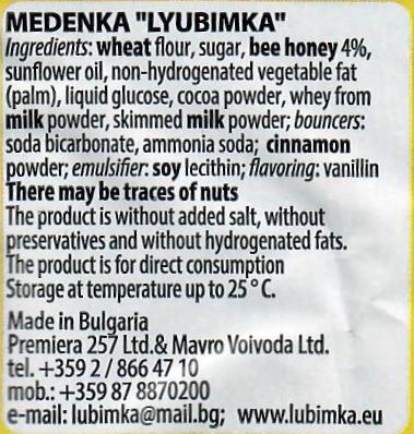 Honey Cake with chocolate 50g Medenka Lyubimka